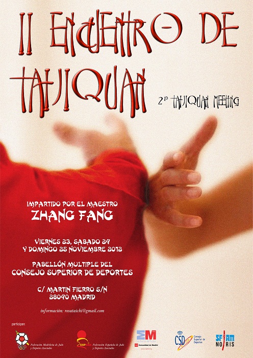 Siguiendo con el proyecto iniciado el pasado año de establecer unas pautas metódicas de enseñanza , crear una base firme y aumentar el nivel de Taiji en España se ha desarrollado el II Encuentro de Taijiquan de Madrid. respaldado por la Real Federación Española de Judo y Deportes Asociados y la Federación Madrileña de Judo y Deportes Asociados.